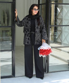 «لبه های کت گان کشی شده و قسمت کمر شلوار از پشت کش میخوره و قسمت جلوی شلوار کمری از جنس کت دوخته شده »