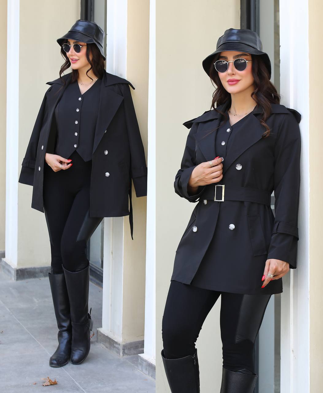 قد ترنچ کت:۷۵ (قد قسمت نوک جلیقه:۵۰)