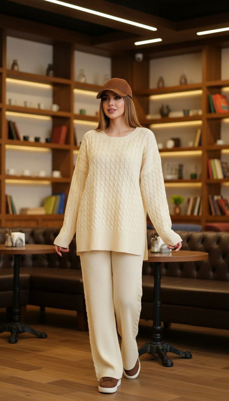 🔖📌ست بلوز شلوار بافت با طرح بسیار خاص و شیک و مزونی و با کیفیت متمایز از مدل های موجود در بازار