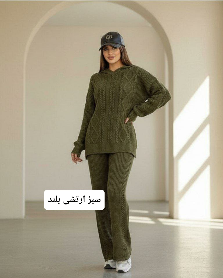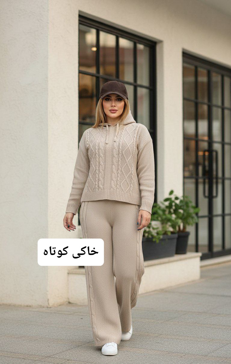 🧵ست هودی کلاهدار با شلوار بافت با کیفیت و کاربردی
