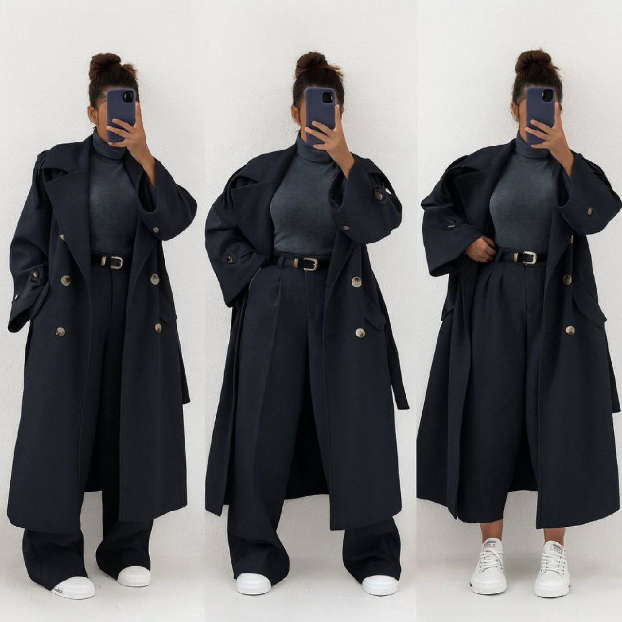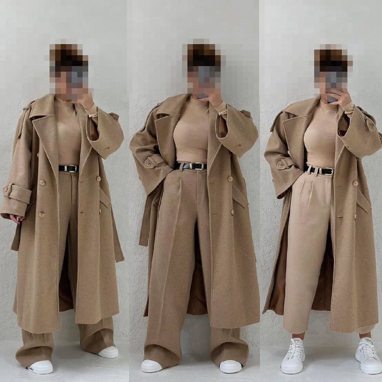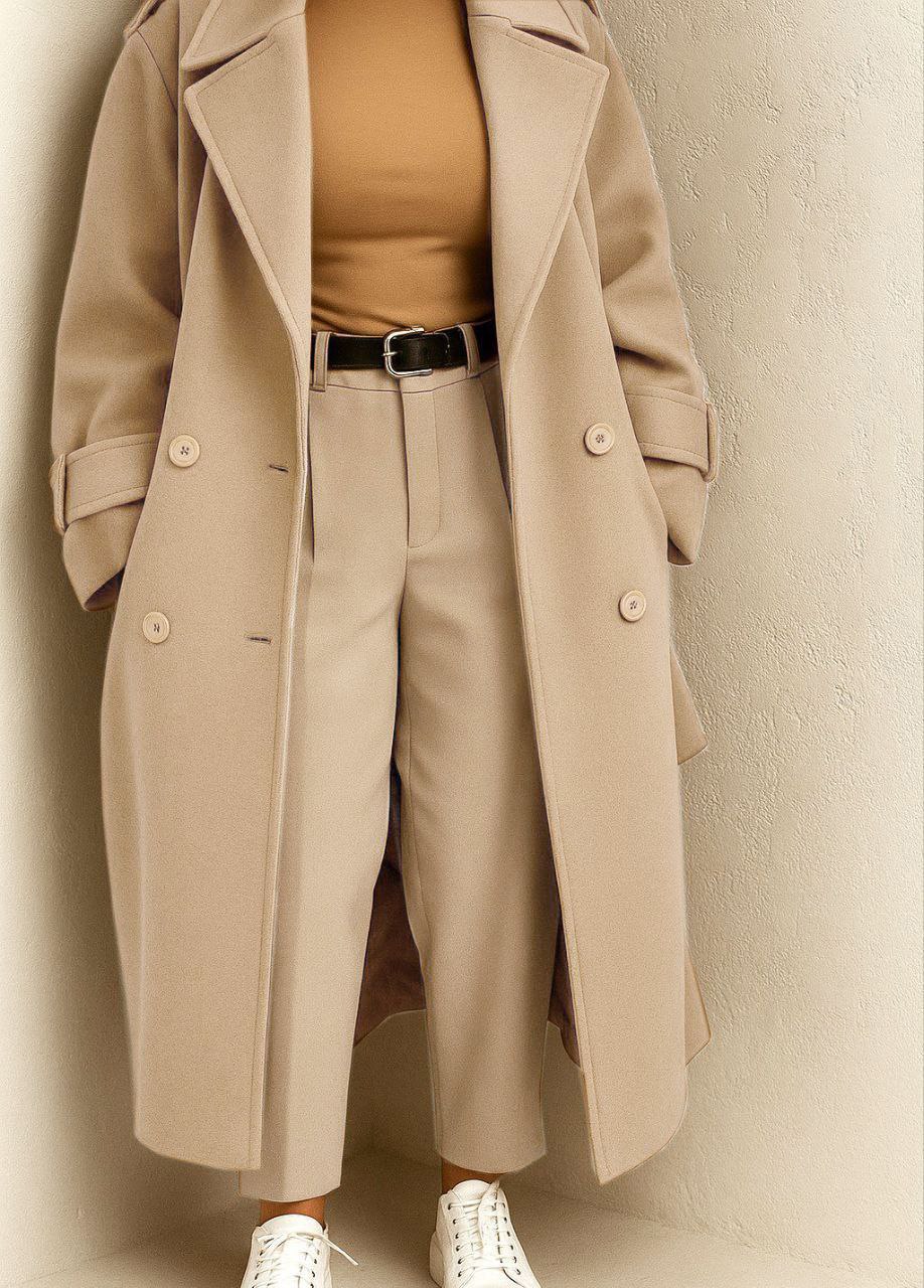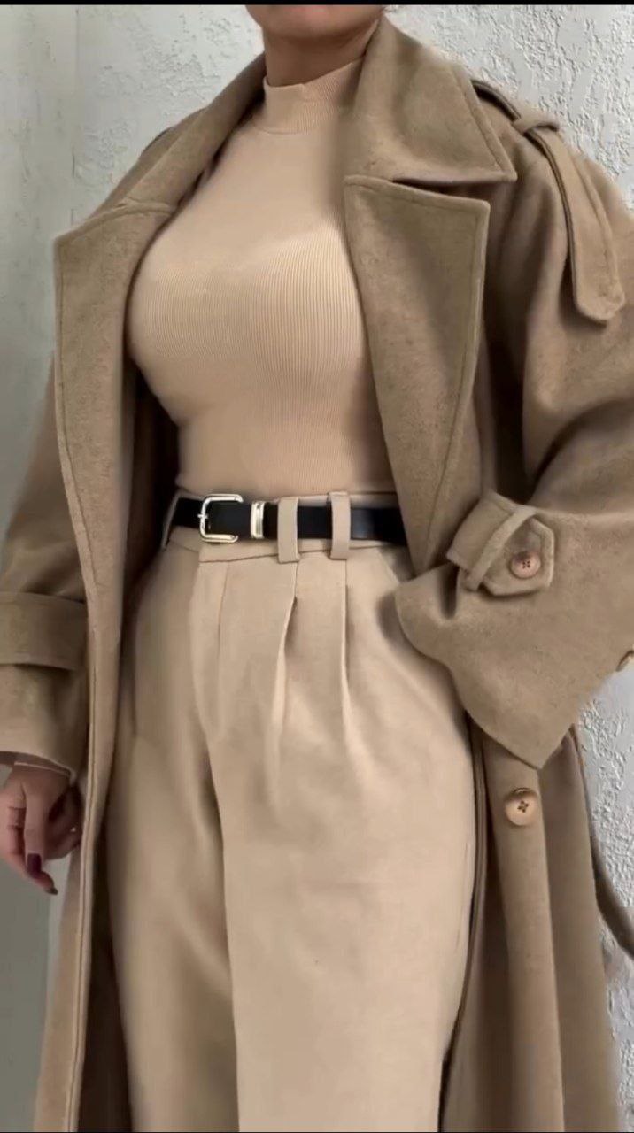 🌸کمربندها و یقه رودوزی شده که حالت مزونی و ایستایی عالی به پالتو میده