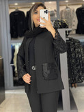 پشت شلوار کش جلو زیپ و دکمه کار شده