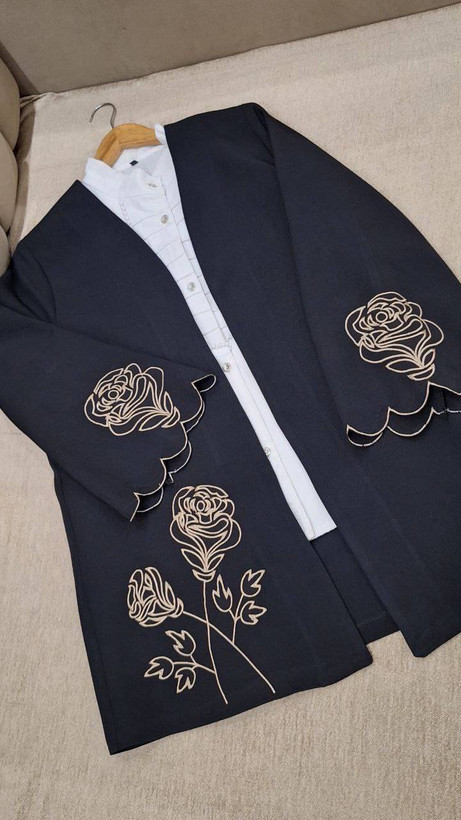مانتویی خوشدوخت با گلدوزی ظریف روی کار ✨