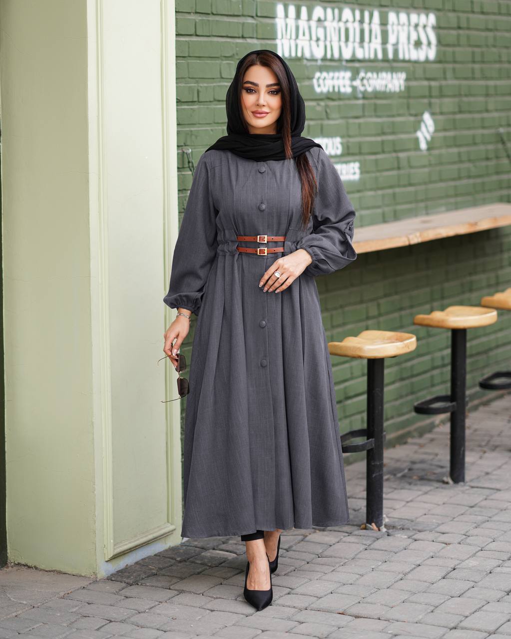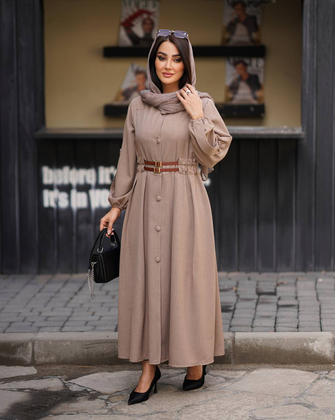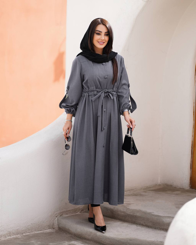 🟢مانتو بلند دو کمربندی شانتون مدل کرشمه